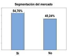 La figura 3 muestra los resultados para la mercadotecnia. Se puede observar que, aunque la mayoría de los directivos (54.76%) manifiesta tener una segmentación eficaz del mercado y los clientes, no representa una diferencia significativa con los que no lo ven de esa manera y revelan deficiencias en cuanto a la implementación. Ello muestra que las asociaciones de productores están orientadas más bien a las ventas y no se ha implementado como tal una orientación al mercado.