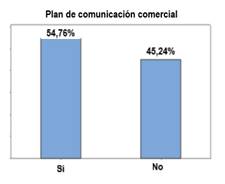 La figura 4 muestra los resultados en cuanto a la información. Aunque la mayoría de los directivos (54.76%) responden de que existe un plan de comunicación comercial, la diferencia es mínima con quienes manifiestan que no conocen de ese plan. También el grupo de colaboradores plantean en su mayoría (71.43%) que la comunicación de los aspectos comerciales es esporádica. Significativo así mismo es que la mayoría de los directivos (52.17%) que plantean una segmentación eficaz del mercado y los clientes, reconocen a su vez que no disponen de un plan de comunicación comercial. En cuanto a la comunicación de las políticas para el manejo de la competitividad, la mayoría de los colaboradores (85.71%) plantean que conocen poco o nada de estas políticas. Al igual que para la dimensión de mercadotecnia, los resultados sobre el flujo de información del tema competitividad reflejan que no se ha concebido una orientación al mercado y se tiene más bien un enfoque orientado a la producción y las ventas.