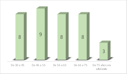 Generalmente, los artesanos que se dedican a la producción de macanas son personas mayores de 30 años, la figura 2, demuestra que del total de artesanos encuestados, el 25% de la población corresponde a una edad comprendida entre 46 y 55 años, las edades entre 30 a 45, 56 a 65 y 66 a 75 años, tienen el 22% respectivamente, y el 8% corresponde a las personas que tienen de 75 años en adelante, el nivel de educación de los involucrados en el estudio es una situación que da a notar una variable que incide en el nivel bajo de productividad de los artesanos por cuanto es de suma importancia poder establecer el nivel de educación que tiene la población en determinadas actividades económicas y con ello medir el impacto de sus acciones a tomar en el desempeño de sus actividades.