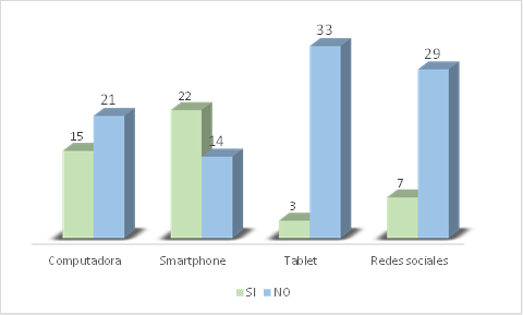 La tecnología juega un papel importante en el mundo actual de los negocios, tecnología y globalización van de la mano, son cambiantes día a día y no paran, por ello podemos observar que el 38% de los artesanos utilizan computadora, mientras que el 55% de los artesanos utiliza teléfono inteligente, y el 8% utiliza una Tablet; ahora al ser utilizados en un 100% de su aplicación como tal la tecnología se transforma en una fortaleza; no obstante, el uso que nuestros artesanos dan a sus aparatos tecnológicos no es el óptimo; y por ello se refleja en sus ventas como en sus estrategias de comercialización.