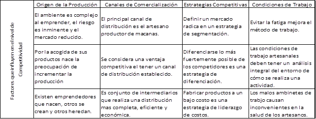 Realizado el análisis sobre los factores que participan en la competitividad de los artesanos macaneros, asumimos que existe un nivel de responsabilidad que detallamos en la siguiente matriz.