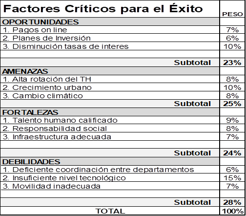 Figura 3. Análisis DOFA con factores críticos para el éxito.