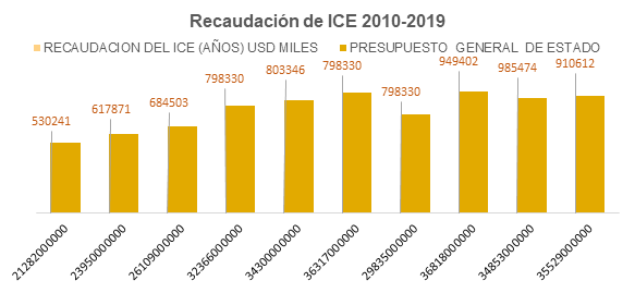 La recaudación del ICE es un impuesto significativo en el presupuesto anual de Estado, su importancia recae desde los últimos años lo que permite el cumplimiento de obligaciones y derechos del contribuyente en medida de sus actividades económicas para el beneficio de la sociedad.