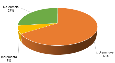 Es la primera vez que el sector camaronero del Ecuador y del mundo se ve afectado por una pandemia, en este caso la del Covid-19; si bien este virus no afecta al producto como tal, afecta a los hábitos de consumo, la oferta y la demanda se ven condicionadas por las medidas de aislamiento y movilidad impuestas para contener la propagación de los contagios, ocasionando que los principales mercados internacionales cierren sus puertas a la importación del crustáceo marino. En este sentido, el 66% de los gerentes consultados afirmaron que la producción ha disminuido en su totalidad, un 7% indicó un aumento y el 27% indica que se ha mantenido en niveles similares a los generados antes de la pandemia. La Figura 4 muestra los resultados mencionados.
