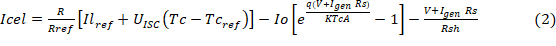 Murillo, D. G. (2003). Modelado y Analisis de sistemas fotovoltaicos [Modeling and Analysis of photovoltaic systems]. Tesis doctoral. Universitat Politécnica de Catalunya. Recuperado de https://n9.cl/2pi95