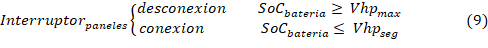 del sistema, específicamente entre dos elementos: el panel solar y la carga