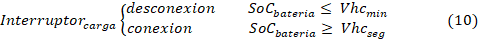 (SoC-descargándose). En las dos últimas gráficas se observa el comportamiento