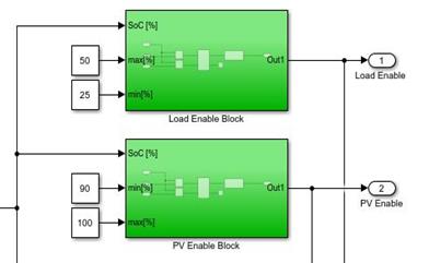 Los modelos resultantes tanto para cargas en DC como en AC son los que se muestran en la figura 24 y 25. En cada uno de estos sistemas destacan tres etapas: 1) generación; 2) almacenamiento; y 3) consumo de carga. Es importante destacar que las simulaciones que obtengamos dependerán de las características técnicas de los paneles solares fotovoltaicos, baterías, inversor, además de las conexiones series o paralelo que se realice en los sistemas que se desea simular.
