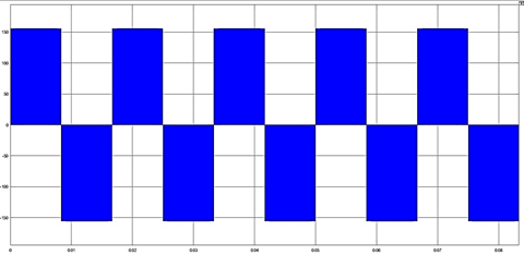 Figura 17. Onda cuadrada en AC a la salida del puente inversor controlado por PWM en Matlab/Simulink.