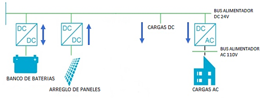 Figura 23. Arquitectura sistema solar fotovoltaico autónomo aislado para cargas DC - AC.