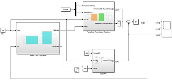 Figura 24. Modelo del sistema solar fotovoltaico autónomo aislado para cargas DC en Matlab/Simulink.