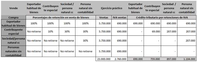 En este orden de ideas, (Muñoz-Rodriguez, 2017) afirma que los contribuyentes están en la obligación de realizar y recibir retenciones cuando existan valores sometidas a retención, ya sea por rendimiento del trabajo, rendimiento de actividades profesionales y rendimientos de capital, de igual forma, las retenciones se reciben cuando perciben rendimientos que se contabilizan en una cuenta del activo. Las retenciones en la fuente de IVA dependerán del volumen de ventas y de la tarifa establecida en el bien comercializado.