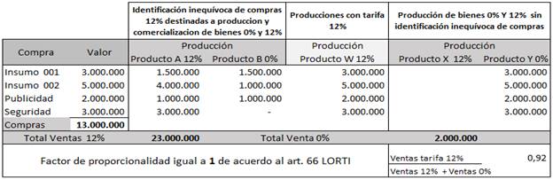 En el caso de las producciones con tarifas de IVA mixtas, es necesario analizar y conocer el tipo de sistema contable con el que cuenta la empresa y establecer si el mismo permite identificar y registrar de manera inequívoca y detallada todas las adquisiciones que tienen derecho al crédito tributario, es decir, que a simple vista se diferencie la proporción de compras con tarifa 12% destinadas a la producción y comercialización de artículos tanto de 0% como de 12%, esta identificación admite que las ventas no sean sometidas a la proporcionalidad.