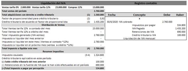 Figura 7. Liquidación del impuesto con ventas a crédito.