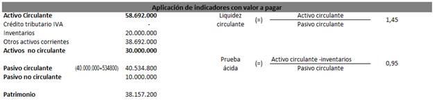 Figura 10. Aplicación de indicadores financieros con valores a pagar.