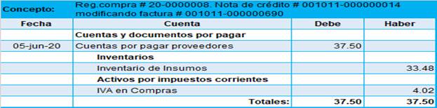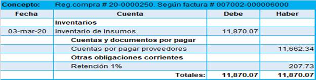 Figura 6. Asiento contable compra de productos terminados.