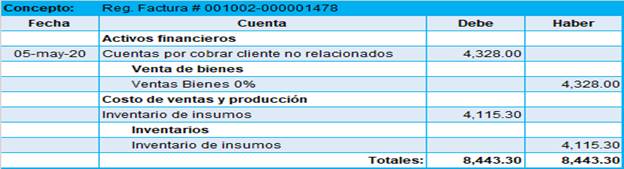 Figura 7. Asiento contable reconocimiento del costo de ventas.