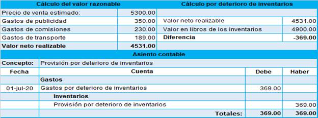 Figura 10. Deterioro de inventarios y asiento contable.