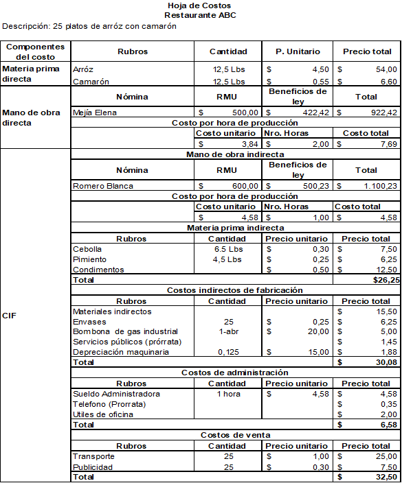 El restaurante tiene una nómina de 4 personas que perciben el salario básico más beneficios sociales; sin embargo, para efectos de cálculo se considera solo el salario de una persona, en el supuesto que esta persona realiza todo el proceso debido a que las actividades en la preparación son muy pequeñas.