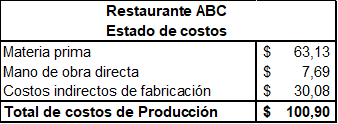 Cada etapa del proceso productivo es indispensable para obtener el costo total del producto terminado. La implementación de este tipo de proceso en un restaurante necesita una adaptación prolija y más simple, ya que las órdenes de producción son inmediatas; el estudio de los costos se realiza al finalizar el mes. Una vez que se obtengan los costos de cada una de las etapas de la producción, será más sencillo obtener el costo del producto terminado. Los elementos que se analizan en esta fase se describen de la figura 5.