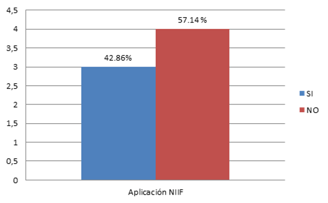 Aplicación de la CINIIF 2. Esta norma que tiene por objeto la administración apropiada de los ingresos recibidos por concepto de caja común. En este sentido, los resultados de la encuesta evidencian que según el criterio de los profesionales contables en el 42.86% de compañías de transporte público con modelo de gestión de caja común si se aplica esta normativa (ver figura 2), mientras que, en el 57,14% no se aplica la normativa, debido al desconocimiento de la misma.