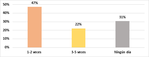 En el gráfico 4, se observa que el 47% se olvida de inyectarse la insulina de 1 y 2 veces, el 22% menciona que sus olvidos van de 3 a 5 veces y el 31% restante no se olvida ningún día.