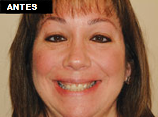 Una mujer de 52 años se mostró preocupada por su mordida, sus hábitos de molienda, su presentación gingival y la falta general de estética en su dentición. Tras consultar con el paciente, se descubrió que a medida que envejecía, notó que sus dientes se veían gradualmente peor. Ella dijo que nunca le había gustado realmente la apariencia de sus dientes, y que su situación actual afectó negativamente su confianza en sí misma. Quería usar lápiz labial, algo que nunca había hecho por miedo a llamar la atención sobre su sonrisa. Como madre y miembro activo de su comunidad, quería una mejor sonrisa.