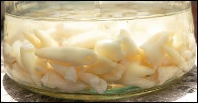 Figura 2. Piezas dentales en hipoclorito de Sodio al 5,25%.