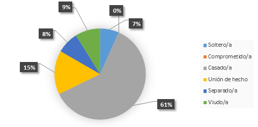 Predomina el estado civil de casado/a entre los pacientes y con un máximo de hasta 5 hijos. Por otro lado la procedencia de mayor números de pacientes diabéticos se corresponden a los aledaños de Eloy Alfaro, Sesme, Pavon y Cucuy.