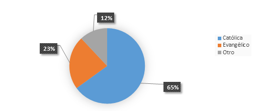 En la tabla y grafico 7 se presenta el análisis del indicador religión, en la que se pudo constatar que el 65% practican la religión católica. Seguido del 23% para pacientes que indicaron practicar como religión el evangelio y solo el 11% lo hacen para otra religión.