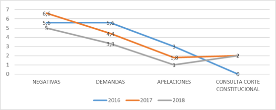 El Consejo de la Judicatura a través de su sistema de gestión procesal, registra que desde el año 2016 al año 2018, el activismo judicial liderado por la comunidad GLBTI, en torno a la legalización del matrimonio se ha venido desarrollando de una forma progresiva, es así, que frente a los escenarios de discriminación y resultados negativos relacionados con la prohibición normativa y la irreflexión devenida de la justicia o través de los organismos administrativos, ocasiono, que las cortes de segundo grado amparados en la Opinión Consultiva OC24/17, suspendan, en el mes de agosto del año 2018 la tramitación del proceso y eleven a consulta de norma el litigio que, desde sus inicios hasta la resolución final estuvo incoada de forma intensa por este colectivo.