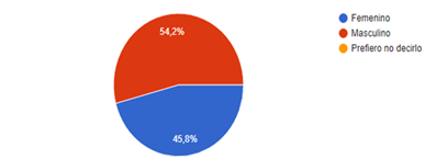 El 54,2% de los estudiantes son de género masculino, mientras que el 45,8% son de género femenino. (Figura 1).