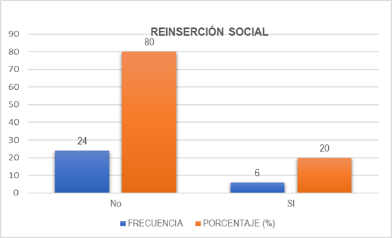 De las treinta encuestas aplicadas, 8 personas que representan el 27 %, manifiestan que si realizan actividades de reinserción social a las personas encarceladas de la población indígena en los centros penitenciarios y en cambio 22 personas que representa el 73 %, dicen que no han tenido ningún tipo de actividades de reinserción social, por cuanto las autoridades competentes del Sistema Nacional Penitenciario, no cumplen a cabalidad con los derechos de los pueblos indígenas, ni con el Reglamento de Sistema de Rehabilitación Social del Ecuador.