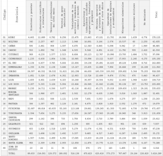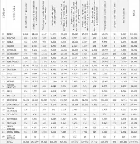 Fuente: Instituto Nacional de Estadística y Censo, Ecuador, 2017.
