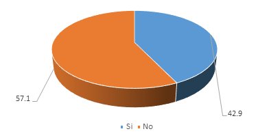 La primera unidad de análisis tuvo como objeto conocer si las personas encuestadas tienen información relacionada con el derecho penal y constitucional. Cuando se les preguntó, si se considera adecuada la aplicación del artículo 372 del Código Orgánico Integral Penal el 57.1% respondió que no, (Ver figura 1) lo que confirma que el texto del artículo motivo de estudio no es el adecuado y que existe una falencia al no incluir al cónyuge sobreviviente en un delito culposo de tránsito, se demuestra que los jueces penales y agentes fiscales en su mayoría consideran que la aplicación de la norma infra constitucional es errónea.