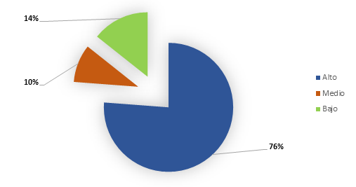 Con relación a la pregunta realizada a los profesionales del derecho referente a la importancia del respeto de los términos en la tramitación de la acción de protección, el 76% de profesionales considera que los tiempos establecidos en la LOGJCC son de alto nivel de importancia, mientras que, un 14 % señala que su nivel de importancia es medio y el 10% restante que su nivel de importancia es bajo (ver figura 1), estos resultar permiten evidenciar que el cumplimiento de los términos establecidos en la constitución y la ley son de vital importancia en la tramitación de la acción de protección que permite que esta garantía cumpla con su objeto de ser directa y eficaz ante la vulneración de derechos constitucionales.