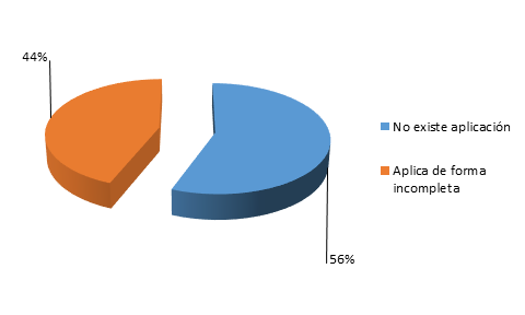 En lo referente al acatamiento y aplicación de la jurisprudencia de la CCE y sobre la garantía constitucional de motivación de sentencias, el 56% de profesionales encuestados coincidió en que no existe aplicación, mientras que, el 44% señaló que se aplica de forma incompleta (ver figura 4), estos resultados dejan en evidencia criterios solventes con relación a la existencia de la vulneración de esta garantía, en este sentido, resulta trascendental el rol de jueces especializados en garantías jurisdiccionales al momento de decidir en un caso concreto, por cuanto la deficiencia o falta de la motivación en el diario litigar genera inseguridad, y por lo mismo, carencia de racionalización del poder judicial.
