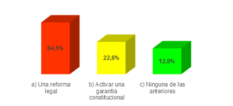 Al preguntarles a los encuestados si es necesario realizar una reforma legal a la LOGJCC el 64,5% (ver figura 4) de los encuestados han expresado que sí, puesto que en el ordenamiento jurídico existen disposiciones que deben ser cumplidas y acatadas de manera integral, mientras que el 22,6% considera que debería activarse una garantía constitucional.