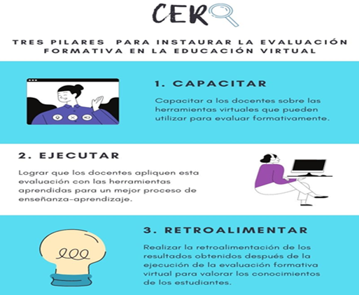Figura 1. Pilares para instaurar la evaluación formativa en la educación virtual (CER). Fuente: Elaboración propia.
