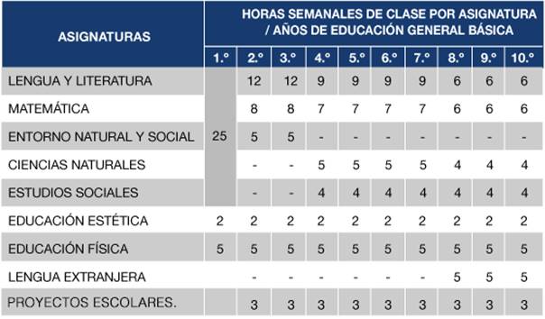 Ministerio de Educación del Ecuador. (2016). Malla Curricular educación general básica [Basic general education Curriculum Mesh]. Recuperado de https://n9.cl/7ysxo