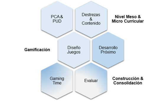 Como todo videojuego, es importante inicialmente; después de haber seleccionado las destrezas curriculares y macro destrezas como objetivos, plantear las reglas del juego. Para ello, se proponen dos momentos en la Gamificación. Por un lado, en el encuentro sincrónico, al igual que en la teoría de la zona de desarrollo próximo, el docente demuestra, además de explicar cuál es la dinámica del juego, objetivo, destrezas y contenido necesario para escalar los niveles.