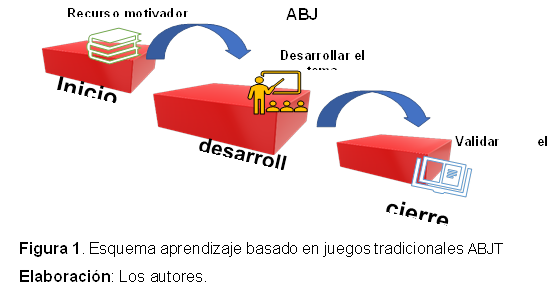Se tuvo como objetivo analizar como los juegos tradicionales pueden ser empleados para el aprendizaje de las nociones lógico-matemático en niños de cuarto de básica. La metodología aplicada es explicativa, el instrumento utilizado fue una ficha de observación la misma que fueron evaluadas por medio el método numérico Alfa de Cronbach, con un valor de 0.787, para el análisis estadístico se empleó el software SPSS, en los resultados se aplicó una estadística inferencial. La propuesta que surge de la presente investigación ABJT aprendizaje basado en juegos tradicionales se demuestra que el aprendizaje en dichos juegos debe ser empleados ya que los resultados obtenidos indican que la enseñanza de la matemática a través de la implementación de los juegos tradicionales dio como resultado positivo.