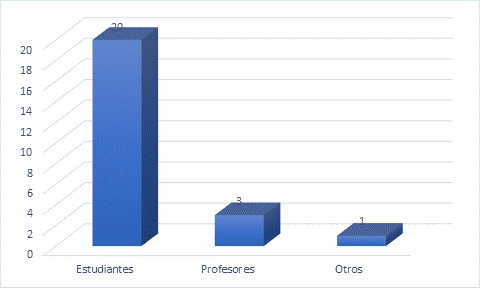 Todos los artículos incluyen dentro de sus participantes a los estudiantes de carreras de ingeniería (Artículos del 1, 2, 3, 4, 5, 6, 7, 8, 9, 10, 11, 12, 13, 14, 15, 16, 17, 18, 19, y 20), tres de ellos incluye a profesores (Artículos 4, 9, y 16), y uno a otros que se corresponde con socios comunitarios (Artículo 9). Este resultado evidencia que el objetivo principal de estas investigaciones está orientado a los estudiantes.