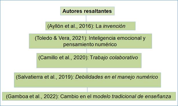De acuerdo con la figura 2, entre los antecedentes encontrados, cabe mencionar el estudio de Ayllón et al. (2016), donde los autores destacaron como aspecto clave la invención, ya que a través de esta, tanto docentes como estudiantes, pueden resolver problemas cotidianos empleando la matemática. Por tanto, la aplicación de un programa de juegos lúdicos contribuiría a mejorar significativamente el aprendizaje en el área de matemática en los estudiantes de la muestra.