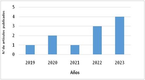 Figura 2. Publicaciones relacionadas al fomento del hábito lector en escolares de educación básica en el periodo de 5 años desde el año 2019 al 2023.