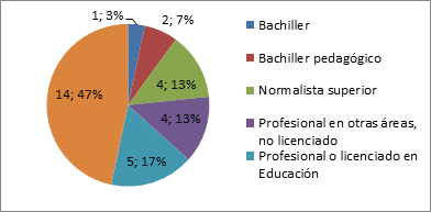 En lo referido a la zona donde imparten docencia los docentes, la muestra seleccionada fue intencional en correspondencia con el Ministerio de Educación Nacional (2022) en su informe técnico, así se seleccionaron 10 docentes de zonas rurales y 20 de zonas urbanas, representando el 33,3 % y 66,7 %, respectivamente.