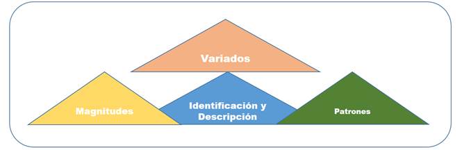 La figura 6 expone la categoría de identificación y descripción de patrones y magnitudes que varían, aspectos que deben ser considerados en la práctica de las matemáticas para facilitar el progreso de los estudiantes de primaria. Lenz (2022) apoya la praxis del pensamiento relacional para facilitar el aprendizaje de las matemáticas al integrar las expresiones matemáticas y las ecuaciones como un todo mediante el empleo de materiales reales, lo que les condujo a resolver cantidades interdependientes.