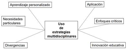 Torres (2024) y Von Feigenblatt (2022) en la figura 5 proponen el empleo de estrategias multidisciplinares para la aplicación de enfoques críticos que conduzcan a la innovación educativa. Asimismo, sugiere el aprendizaje personalizado para atender a las necesidades particulares y divergentes de los estudiantes.
