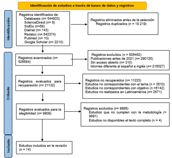 En la figura 1 se detalla el proceso de la revisión sistemática mediante el diagrama sobre el aprendizaje adaptativo con inteligencia artificial en estudiantes del nivel superior en Latinoamérica.