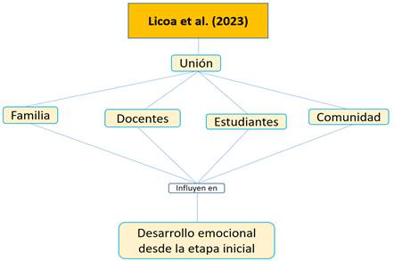Licoa et al. (2023) afirman que la unión de todos; es decir, de los actores que forman parte del contexto educativo (familia, docentes, estudiantes, comunidad u otros) influyen positivamente en el desarrollo emocional de los estudiantes desde su etapa educativa inicial.